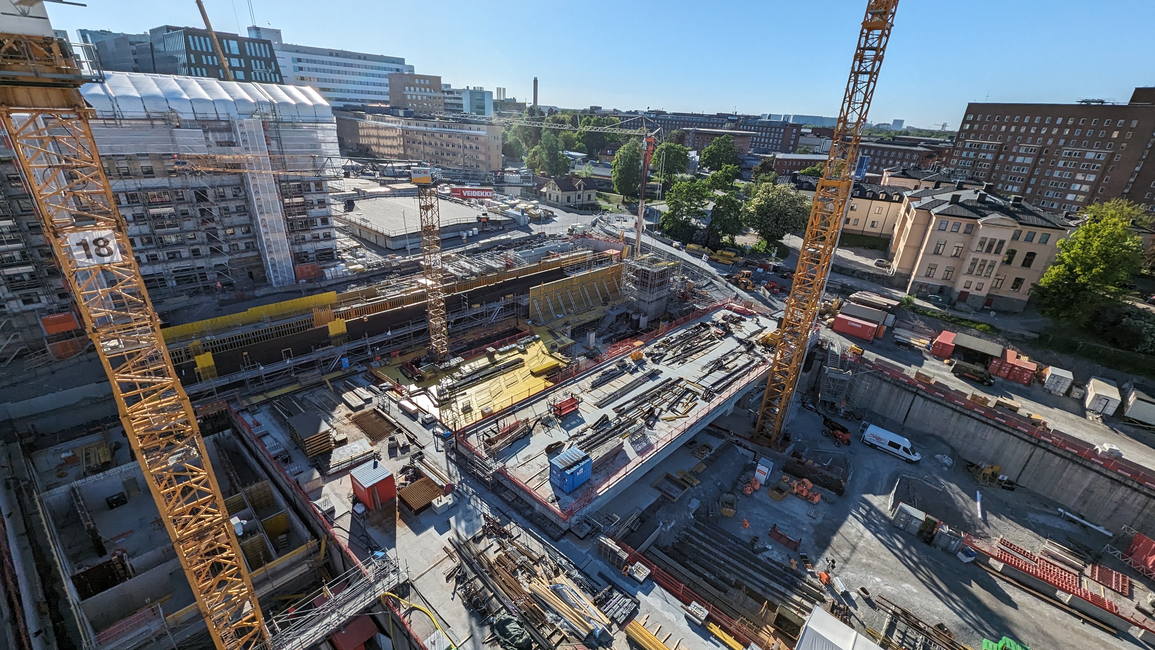 Mätningar som gjorts under projektets gång visar toppbetyg för trivsel på arbetsplatsen – och trivs man jobbet jobbar man också säkrare och tar färre risker, menar Per-Olof. Veidekke arbetar uteslutande med egen personal och svenska är arbetsspråk på arbetsplatsen.